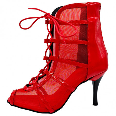 Color y tejidos: Charol rojo y rejilla