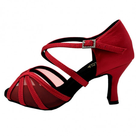 Este modelo realizado en raso con Rejilla en color Rojo para proteger sus dedos.